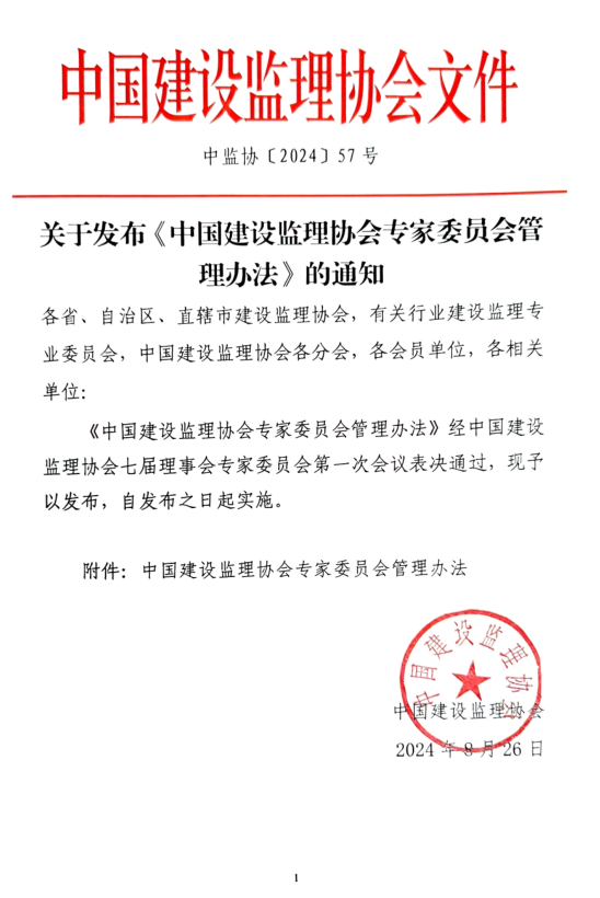 中國(guó)建設(shè)監(jiān)理協(xié)會(huì)關(guān)于發(fā)布《中國(guó)建設(shè)監(jiān)理協(xié)會(huì)專家委員會(huì)管理辦法》的通知