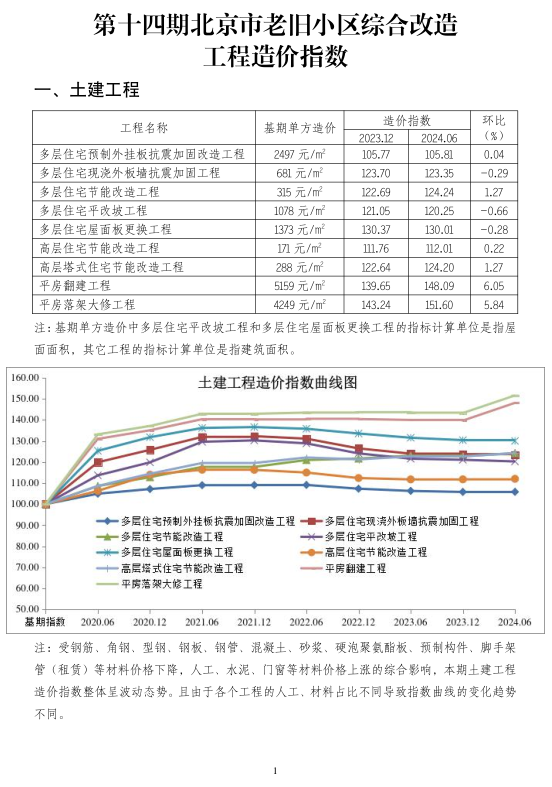 北京市住房和城鄉建設委員會發布《第十四期北京市老舊小區綜合改造工程造價指數》