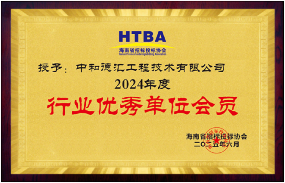 熱烈祝賀中和德匯工程技術有限公司榮獲海南省招標投標協會2024年度行業優秀單位會員榮譽稱號