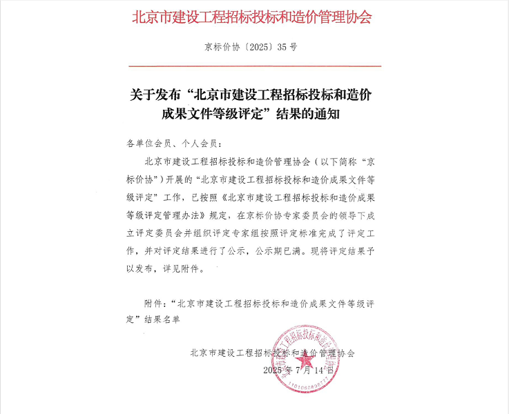 熱烈祝賀中和德匯榮獲“2025年度北京市建設(shè)工程招標(biāo)投標(biāo)及造價(jià)成果文件等級(jí)評(píng)定”獎(jiǎng)項(xiàng)