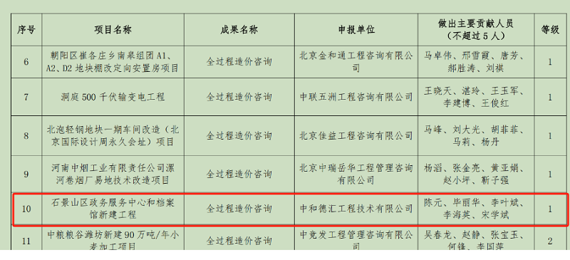 在2025年度北京市建設(shè)工程招標(biāo)投標(biāo)及造價(jià)成果文件等級(jí)評(píng)定中,我公司承攬的石景山區(qū)政務(wù)服務(wù)中心和檔案館新建工程榮獲“全過(guò)程造價(jià)成果類”一級(jí)獎(jiǎng)項(xiàng)!北京東南高速公路智慧物流港項(xiàng)目(一期)施工準(zhǔn)備階段工程榮獲“清單最高投標(biāo)限價(jià)成果類”二級(jí)獎(jiǎng)項(xiàng)!